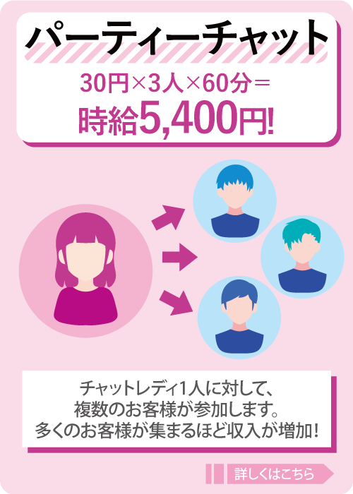 チャットレディとは、パソコン越しでお客様と会話やコミュニケーションを行って頂くお仕事です。お客様は24時間日本全国からインターネットを介してアクセスされるため、お仕事する「時間」や「立地」にとらわれずいつでも高収入を獲得することが出来る事が大きな特徴です。